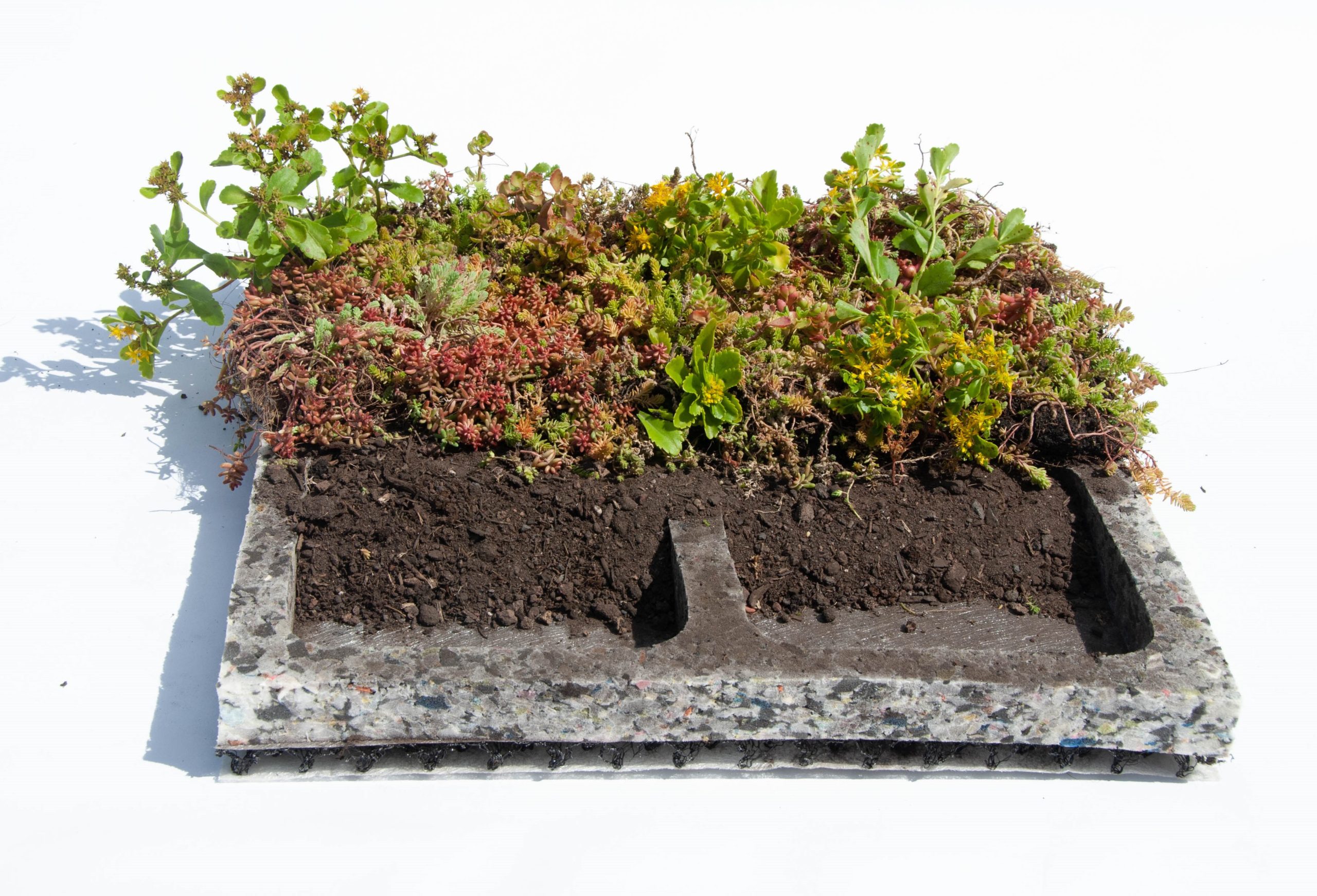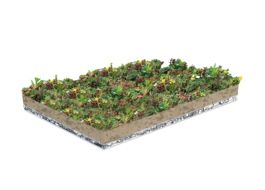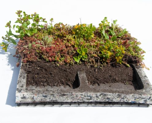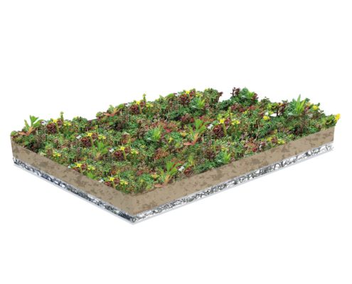 De voorbegroeide trays bevatten zes tot acht verschillende soorten Sedum. De Sedumplantjes groeien op een speciaal ontwikkeld substraat. Bij levering is de Place ’n go Sedumtray altijd voor minimaal 95% begroeid. Het vetachtige plantje Sedum is goed in staat om water in het blad op te slaan en kan daarom uitstekend functioneren onder diverse weersomstandigheden.